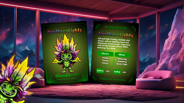 Each OG CheebaPet is forever memorialized in collectible 3D NFT Trading Cards. The CheebaPet Characters are artistically hand-drawn and accompanied by original soundtracks inspired by the profile of each strain.
